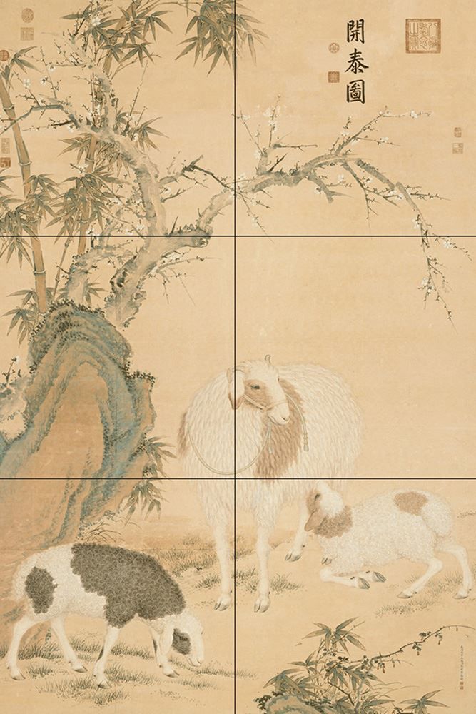 清代郎世宁的动物画中的神品。作者通过细腻的笔触描绘出羊休闲憩息的场面,表达祥和安逸的意境。同时,古时“阳”与“羊”同音。人们也常把“三阳开泰”写成“三羊开泰”,乃取其谐音而已,其引申意思为有好运即将降临之意。作者三羊憩息图实则寓意吉祥如意,为太平美好的象征。
