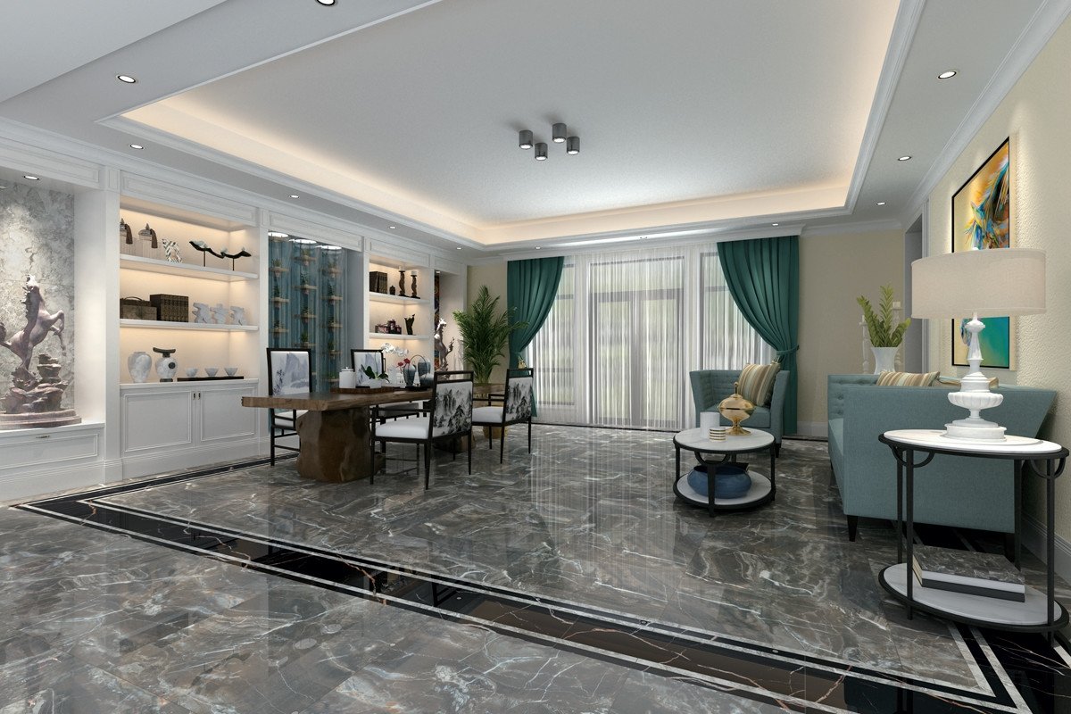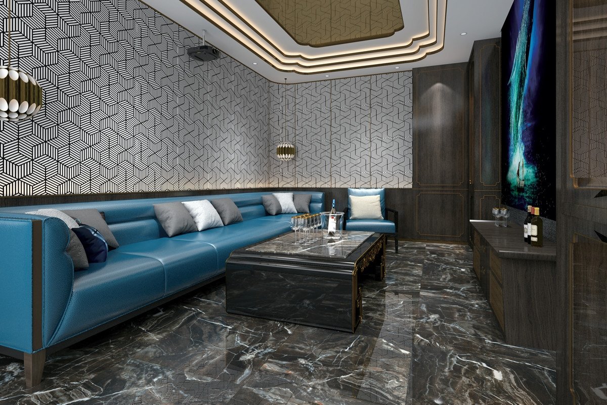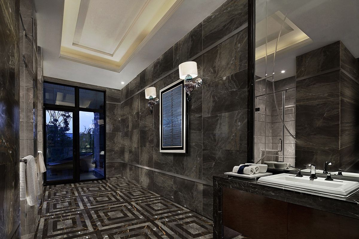 埃菲斯石材源自土耳其伊兹密尔西南的古城埃菲斯(Ephesus)。古城埃菲斯的土耳其名为“Efes”,它紧靠爱琴海,受阿拉伯板块与欧亚板块的自然作用,成为世界石材的重要产区,也是考古学家和游客神往之地。埃菲斯石材色泽深邃古朴,黑底上浮动云烟状细纹,它沉静高贵不张扬的视觉感受,为空间营造出历史与现代融合的贵族气派。